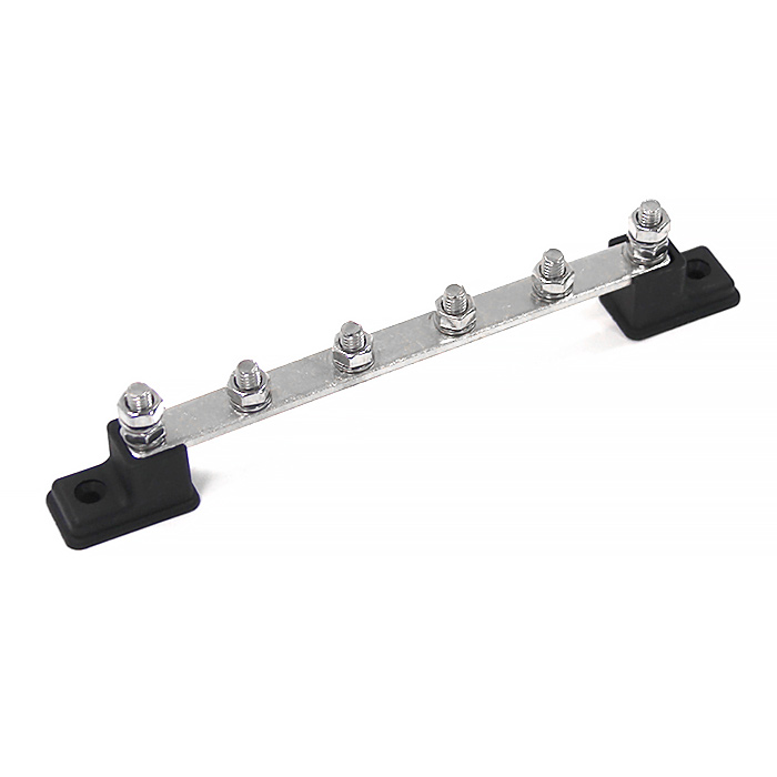 Клемма состоит из 2 клеммы питающего напряжения M6 и 4 клемм потребителей M6. Это позволяет легко и просто подключить необходимое количество устройств к бортовой электрической системе.