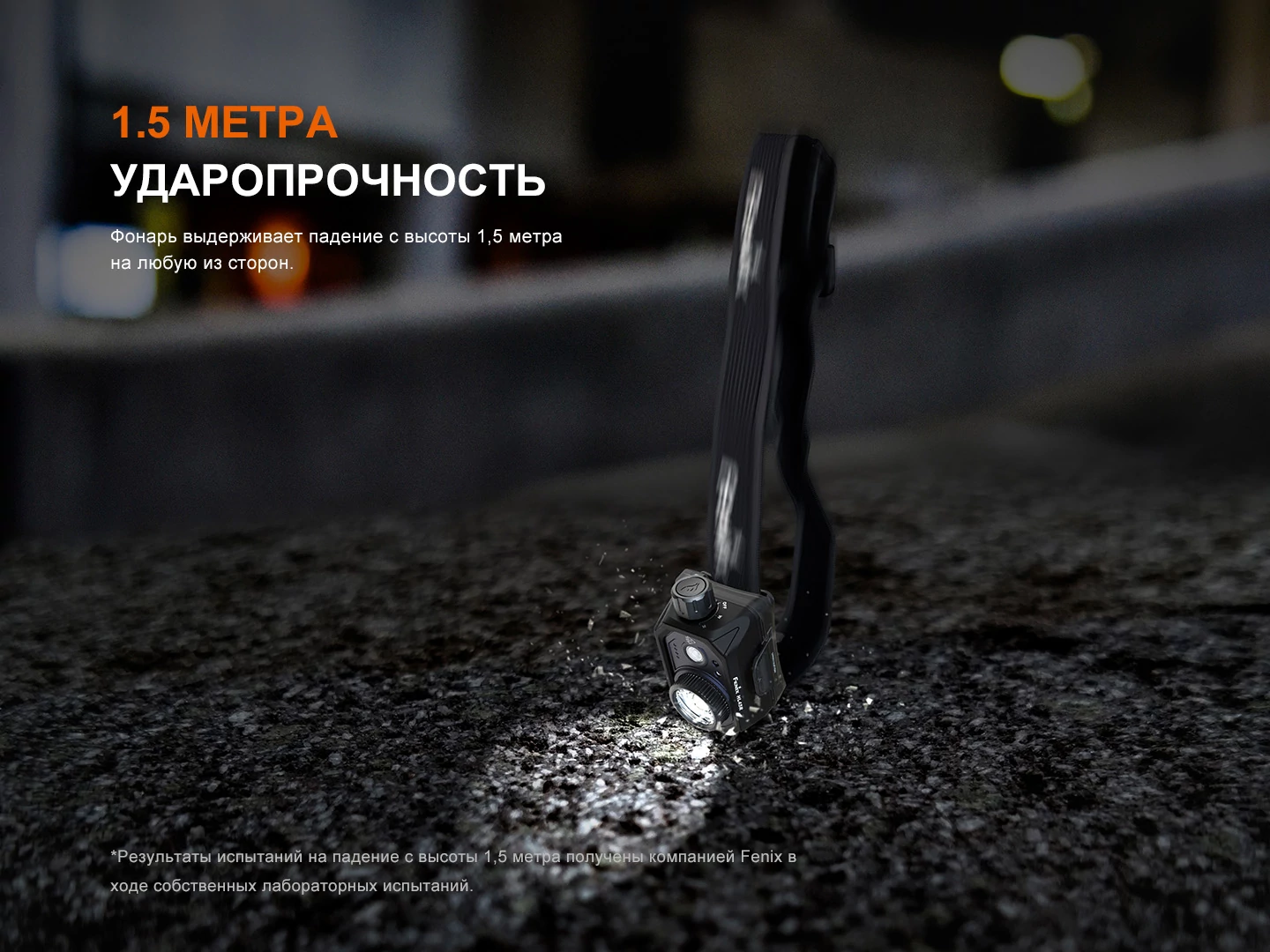Передняя часть корпуса Fenix HL45R выполнена из прочного алюминиевого сплава. Фонарь выдерживает падение с высоты 1.5 метров, а также обладает защитой от воды и пыли IP66.