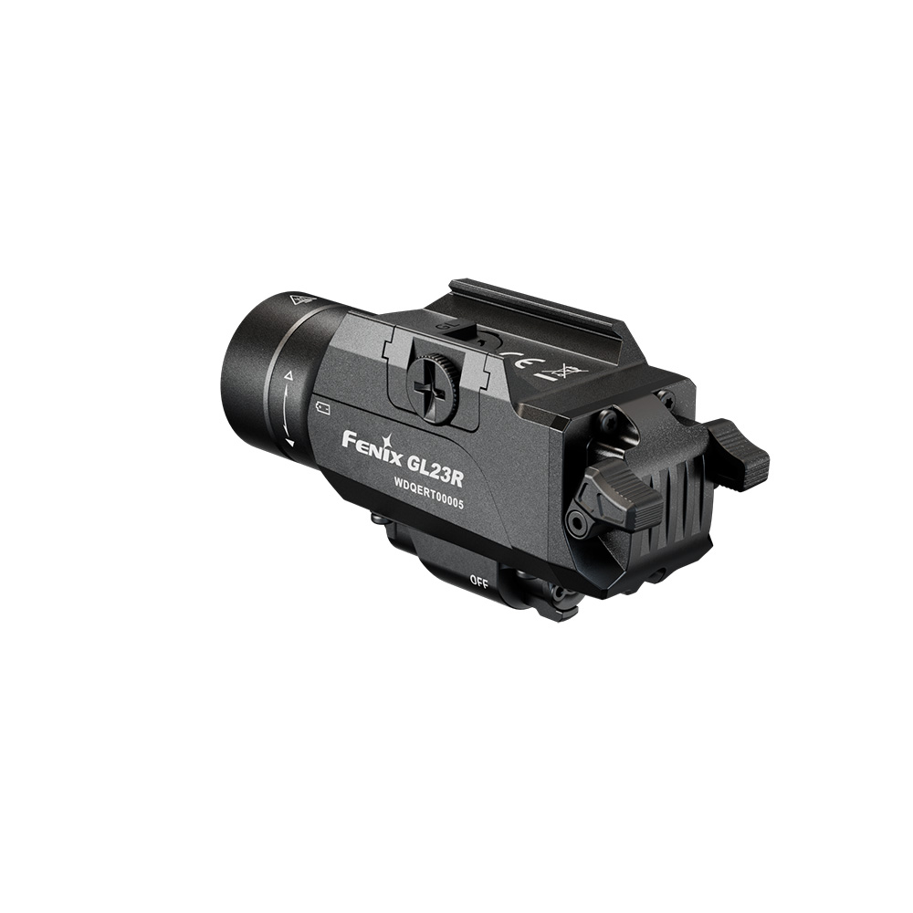 В Fenix GL23R встроен двойной переключатель. Нижний тумблер позволяет выбрать один из трех режимов работы, либо полностью выключить фонарь. Хвостовые переключатели имеют 3 положения — тактический свет, постоянный свет и выключение освещения. Переключатели дублируют друг друга с двух сторон и позволяют активировать фонарь любой рукой, помогая контролировать ситуацию, что дает несомненное преимущество в бое.
