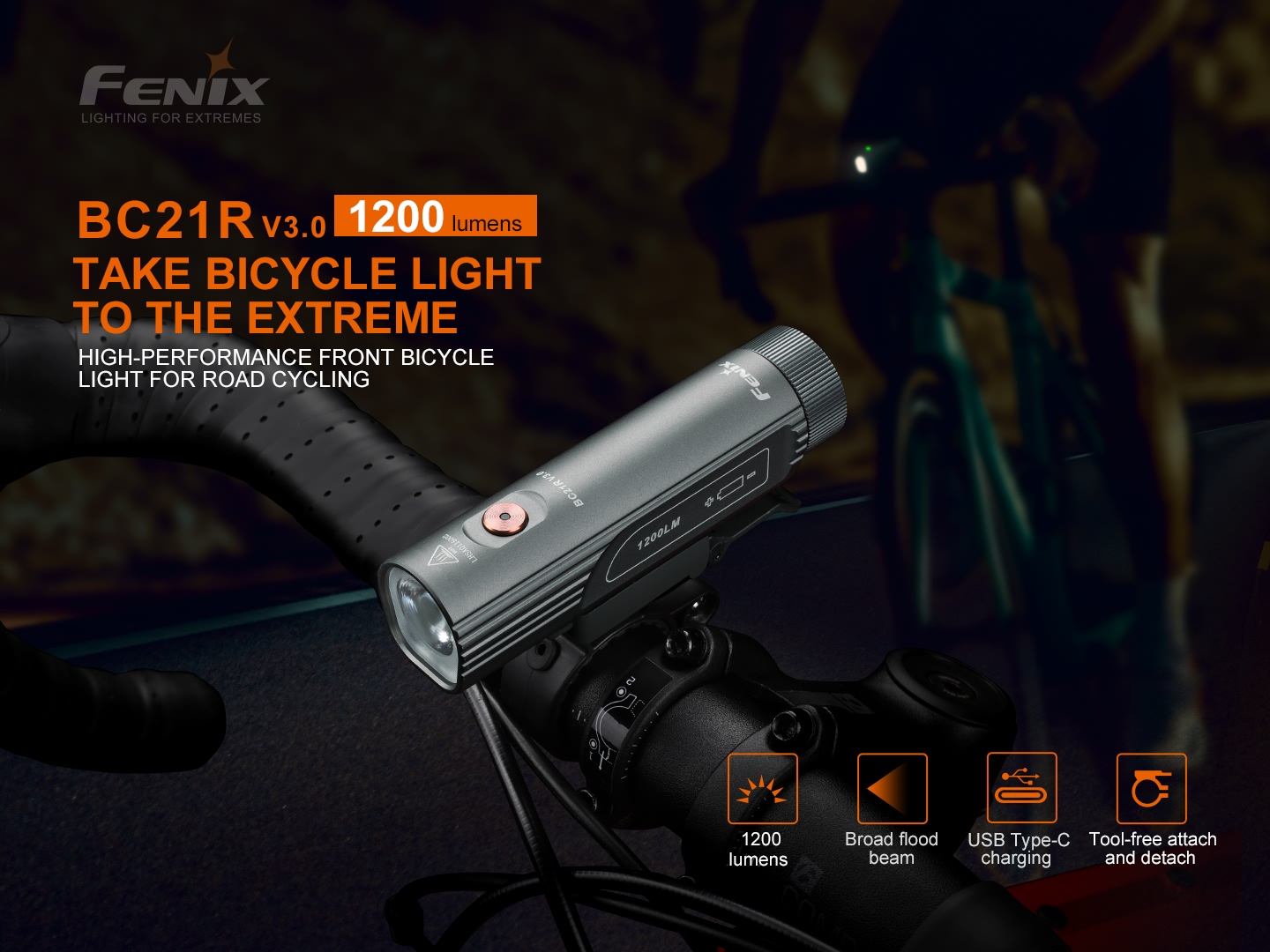 Модель Fenix BC21R V3.0 — это профессиональный велосипедный фонарь для горного и шоссейного велоспорта, подходящий для интенсивных заездов на длинные дистанции. Яркость света достигает 1200 люменов, и его можно увидеть на дистанции 142 метра. Фонарь перезаряжается через USB Type-C и питается от прилагаемой батареи емкостью 18650/2600 мАч.